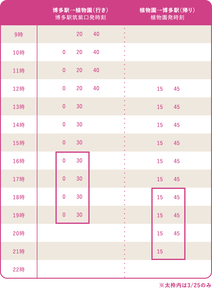 天神・薬院・博多駅~福岡市植物園間のシャトルバス(無料)も運行しますので、ぜひご利用ください。